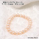 淡水 パール ブレスレット オレンジ系 7.5~8mm 簡単 ゴム使用 ネコポス配送