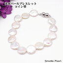 淡水 パール ブレスレット コイン型 真珠 直径12mm ホワイト系 マグネット式 着脱簡単 プレゼント ギフト 贈り物