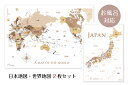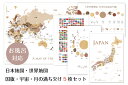 楽天ランキング1位多数入賞!木目が温かい、人気の寄木風地図セット♪インテリアにも!お風呂対応 寄木風の日本地図 A3サイズ&世界地図 B3サイズセット ポスター 知育