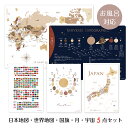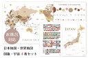 楽天ランキング1位多数入賞!木目が温かい、人気の寄木風地図セット♪インテリアにも!お風呂対応 3点セット 寄木風の日本地図 A3サイズ&世界地図 B3サイズ&国旗ポスター A3 知育 地理