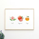 女性を幸せに導くとする「桃、ざくろ、橘(たちばな)」の三つの果実のイラスト♪三柑 A4サイズ 桃 橘 みかん ザクロ インテリア 妊活 妊娠 安産祈願 ポスター おしゃれ オーダー サイズ【受注生産】