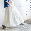 あしたのふく ちょっぴりティアードスカート M/L/LL/3L/4Lサイズ レディース/フレアスカート/ロング/ギャザー/Aライン/リネン混/麻混/ボトムス