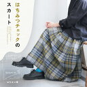はちみつ堂 はちみつチェックのスカート M/L/LL/3L/4L/5Lサイズ レディース/ロング/フレア/Aライン/麻混/リネン混/ボトムス
