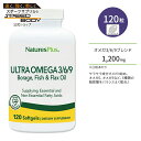 サプリメント 栄養 健康 手軽 ヘルスケア サラサラ EPA DHAネイチャーズプラス ウルトラオメガ 3 / 6 / 9 ソフトジェル 120粒 NaturesPlus Ultra Omega 3 / 6 / 9 Softgels ルリヂサ油 魚油 亜麻仁油