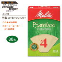 オーガニック 抽出 カフェ 休憩 一息 便利 美味しい 使い捨てメリタ 竹製コーヒーフィルター 4番 80枚入り Melitta #4 Bamboo Coffee Filters コーン 円錐 台形 エコ
