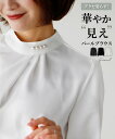 アクセいらず!パールブラウス華やか見えブラウス トップス パール スタンド ネック カラー ドレープ 上品 blouse 白 黒 灰 ホワイト チャコール ブラック White Black charcoal セレモニー 卒入学式 卒業式 入学式 お呼ばれ おしゃれ 華やか 春 秋 冬 小柄さんもOK Ehrestyle フリーサイズ 【S251005】