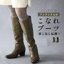 ワンランク上のこなれブーツ着こなし伝授!◆◆ロングブーツ レディース ブーツ ロング 靴 スクエアートゥ 6cm 6cmヒール Reiko コラボ バックファスナー シンプル 美脚 カーキ ブラック 黒 37 38 39 40 秋 冬 秋冬 ファッション スタイル エーレスタイル【F241204】
