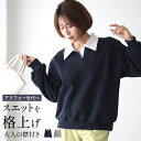 アラフォー世代へ。スエットを格上げ大人の襟付きトップス スウェット 襟付 配色 バイカラー デザイントップス カジュアル キレイめ オフィスカジュアル 楽ちん 長袖 ネイビー グレー Navy Gray 紺 灰 秋 冬 春 フリーサイズ レディース ファッション Ehre style エーレスタイル 小柄さんもOK Ehrestyle【F250218】