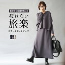 旅行や長時間移動に◎疲れない旅楽セットスカートセットアップセットアップ ポンチ スカートセット ウエストゴム 半袖 長袖 お出かけ 春 夏 秋 冬 体型カバー ストレッチ 着回し 帰省 旅行 レジャー レディース きれいめ 小柄さんOK 長袖 半袖 チャコールグレー ライトベージュ ミントグリーン ディープブルー【set】【S251105】