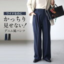 ワイドなのにかっちり見せない!デニム風パンツパンツ ロング ワイドパンツ ロングパンツ デニム風 デニム ワイド ブラック ブルー Black Blue 黒 紺 青 ウエスト ゴム 春 夏 秋 冬 オールシーズン 薄手 落ち感 定番 キレイめ フリーサイズ レディース ファッション Ehre style エーレスタイル【F250410】【S251123】