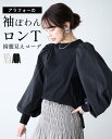 アラフォーの袖ぽわんロンT 綺麗見えコーデ◆◆トップス 長袖Tシャツ 袖ボリューム 長袖 Tシャツ ロンT 袖ぽわん ぽわん袖 綺麗見え 可愛い ブラック ホワイト black 黒 白 フリーサイズ 春 秋 冬 体型カバー 華奢見え レディース ファッション Ehre style スタイル エーレスタイル【F250426】