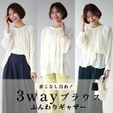 着こなし自由!3wayブラウスふんわりギャザーブラウス トップス 3way ぽわん袖 フェミニン ギャザー 体型カバー 透け感 上品 キレイめ 軽い リボン ベージュ ブラック Beige Black 肌 黒 シフォンライク ボタン 着回し 春 夏 秋 フリーサイズ レディース ファッション Ehre style スタイル エーレスタイル【F250501】