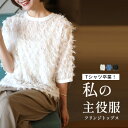 Tシャツ卒業!私の主役服フリンジトップストップス ブラウス フリンジ フリンジブラウス 薄手 丸首 スリット 織り柄 着映え 高見え 半袖 五分袖 カジュアル ホワイト ブルー ブラック White Blue Black 白 青 黒 夏 秋 フリーサイズ レディース ファッション Ehre style スタイル エーレスタイル【F250601】