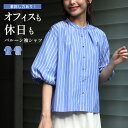 着回し力あり!オフィスも休日もバルーン袖シャツトップス シャツ ストライプ バルーン袖 デザイン袖 着回し 5分袖 機能性 シャリ感 通勤 オフィス 休日 ボタン ライトブルー ブルー Lightblue Blue 青 春 夏 秋 シワになりにくい フリーサイズ レディース ファッション Ehre style スタイル エーレスタイル【F250715】
