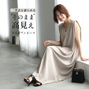 二次会もOK!そのまま高見え大人夏ワンピワンピース ワンピ ノースリ Vネック シャーリング 光沢 きちんと感 楽 体型カバー 二次会 高見え 上品 とろみ 柔らかい ポケット ブラック ベージュ Black Beige 黒 肌 夏 秋 フリーサイズ レディース ファッション Ehre style スタイル エーレスタイル【F250701】