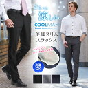 吸水速乾 Cool MAXで涼しく快適!オンオフ使えるビジネススラックス!(きれいめ 春夏 細身 美脚パンツ クールビズ COOLBIZ)【特価】【ブラックシャドーストライプ ウエスト88cm限定】 スラックス スリム メンズ COOLMAX クールマックス ノータック ローライズ 涼しい 春夏用 清涼 メッシュ 洗える