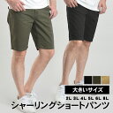 シャーリングショートパンツ 大きいサイズ 膝丈【色サイズ限定】 ハーフパンツ メンズ 大きいサイズ ショートパンツ カジュアルパンツ 膝丈 春夏 無地 ベージュ オリーブ ブラック BIG