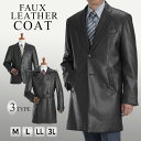 しなやかでソフトな風合いのフェイクレザーコート3タイプ。上品で高級感のあるスタイリングを演出してくれます。【お買い物マラソン 3,000円OFFクーポンあり】 コート メンズ フェイクレザーコート デザイン3型 ビジネス アウター テーラードジャケット チェスターコート トレンチコート スーツアウター カジュアル M L LL 3Lサイズ 合成皮革 ハーフ丈 ミドル丈 軽量 黒 通勤コート