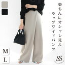 【商品名】ラップワイドパンツ Sweet&Sheepパンツ ワイドパンツ レディース ラップワイドパンツ ハイウエスト ボトムス ロング丈 ラップ風 アシメントリー ゆったり きれいめ カジュアル 仕事 オフィス 母親 体型カバー M L 脚長 無地 通勤 卒業式 ママ 秋冬 フォーマル