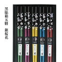 黒貼箱5膳入 銀桜花。ギフトや引き出物に!黒貼箱5膳 銀桜花【日本製 和柄 和風 職人 箸 お箸 はし 抗菌加工 食洗機対応 結婚祝い お祝い 引き出物 おしゃれ シンプル 飲食店 日本料理 和食 家族 夫婦箸 プレゼント 田中箸店 ネコポス対応 メール便対応 お土産 インバウンド】 [M便 1/1]