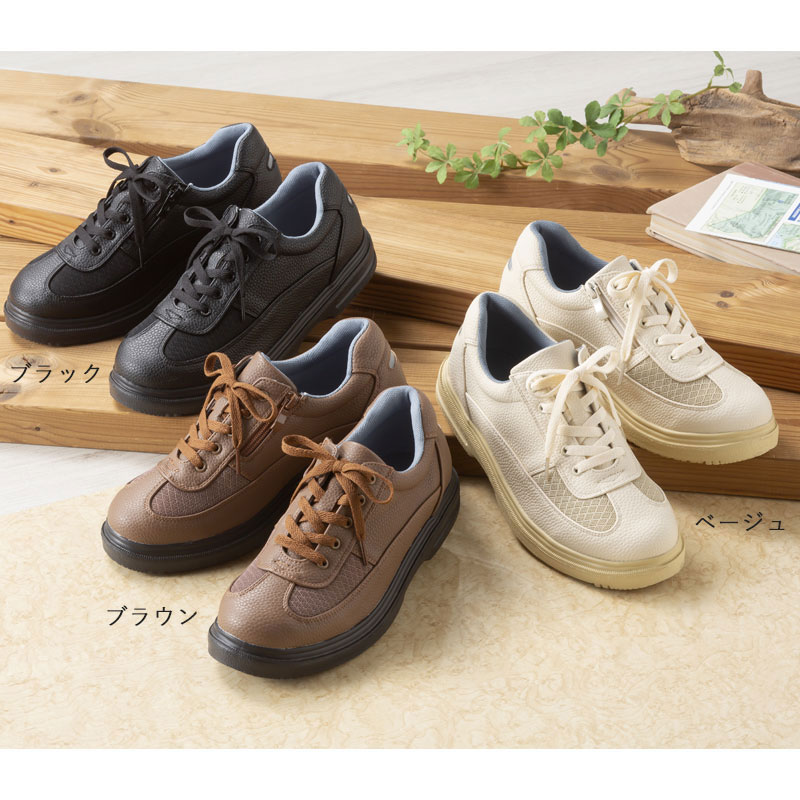 | 商品詳細 | 靴ひもとサイドファスナーで脱ぎ履きが簡単なウォーキングシューズ。 3色セットなのでお出かけやウォーキング時に装いに合わせてカラーを選べます。 非常にクッション性の高い抗菌防臭加工インソールで快適な歩行をサポートします。 サイドファスナーの引手が大きくつまみやすい工夫をしています。 幅広の4Eラストを使用していますので、足入れゆったりです。 かかと部分に光反射材を使用し、夜間の歩行をサポートします。