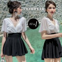 シアー生地で細いくびれに、フレアスカートで女っぽさを残して フレアワンピース ミセス 女性 大人 ノースリ ワイヤーなし ウエスト 切り替え ショートパンツ一体型ワンピース 水着 レディース 体型カバー水着 20代 30代 40代 50代 ママ水着 オトナ女子 露出控えめ セクシー 黒 オールインワン ノースリーブ 透け シースルー Vネック風 カットアウト パッド付き バスト 盛れる お腹 お尻 太もも カバーアップ