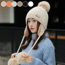 ポンポン&耳当て付きで可愛くあったか♪コーデにアクセントを+ ニットキャップ ニット 帽子 女性 小顔効果 韓国 厚手 耳当て付き お洒落 可愛い アウトドア スノーボードニット帽 レディース ポンポン 耳あて おしゃれ かわいい 冬 あったか もこもこ シンプル 無地 防寒 暖かい 寒さ対策 ケーブル編み 折り返し 伸縮性 ガーリー カジュアル ナチュラル ファッション スキー スノボー ウインタースポーツ 雪遊び 普段使い