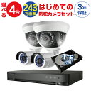 【 はじめての 防犯カメラセット HDD1TB付属】約243万画素 送料無料! 防水 スマホ モニタリング 対応!!防犯カメラ 屋外 用 屋内 用 から 4台 選択 防犯カメラ セット 監視カメラセット 4ch ハードディスクレコーダー/HDD1TB付属 HD-TVI FIXレンズ 赤外線付き バレット型 ドーム型 監視カメラ 小型 遠隔監視