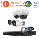 【 ネットワーク 防犯カメラセット HDD1TB付属】LANケーブルだけで楽々 200万画素 カメラ 取付け!防犯カメラ 屋外用 屋内 用 から選択 4台 防犯カメラセット 監視カメラセット 4ch POE内蔵 ネットワーク 録画機 HDD1TB付属 FIXレンズ 赤外線付き バレット型 ドーム型 ネットワークカメラ IPカメラ 遠隔監視可