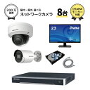 【 モニター付属 防犯カメラセット HDD2TB付属 】LANケーブルだけで楽々 200万画素 カメラ 取付け!23インチモニター付属 防犯カメラセット ネットワークカメラ 屋外 用 屋内 用 から 6台 選択 8ch POE内蔵 ネットワーク 録画機 HDD2TB付属 FIXレンズ 赤外線付き バレット型 ドーム型 ネットワークカメラ IPカメラ 遠隔監視可