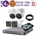 防犯カメラ 監視カメラ 3台 屋外用 屋内用 から選択 防犯カメラセット 監視カメラセット 4ch ハードディスクレコーダー/HDD1TB付属 HD-TVI FIXレンズ 赤外線付き バレット型 ドーム型 カメラ 遠隔監視可