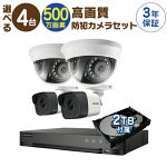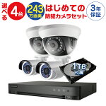 | 防犯カメラ 屋外 用 屋内 用 から 4台 選択 防犯カメラ セット 監視カメラセット 4ch ハードディスクレコーダー/HDD1TB付属 HD-TVI FIXレンズ 赤外線付き バレット型 ドーム型 監視カメラ 小型 遠隔監視