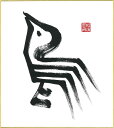 直筆色紙 【松塚 展門 作】鳥#t2墨の鳥酉(とり)墨のパンセ色紙サイズ(W242×H273)