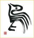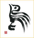 直筆色紙 【松塚 展門 作】鳥#t1墨の鳥酉(とり)墨のパンセ色紙サイズ(W242×H273)