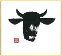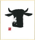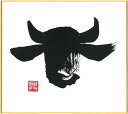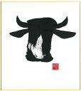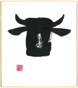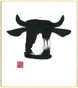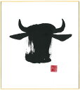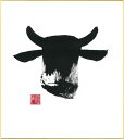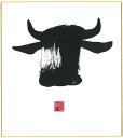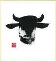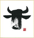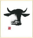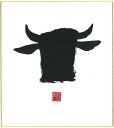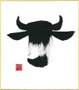 直筆色紙 【松塚 展門 作】牛#um1墨の牛丑(うし)墨のパンセミニ色紙(W135×H120)