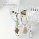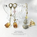 様々な風合いのストーンやシェルを使用したロングピアス。コーデのアクセントになる大き目デザインは、ボブやまとめ髪にぴったり。レディース/ジュエリー/ギフト/お洒落/ピアス チタンポスト シェル (ブラウン / グレー)アシメピアス スタッドピアス【送料無料】【ピアス】【アクセサリー】MADE in JAPAN