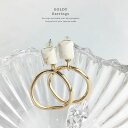 耳元で揺れるリングが目を惹くピアス。季節を問わず長くお使いいただけるデザインです。レディース/ジュエリー/ギフト/お洒落/ピアス (グリーン / ベージュ / ホワイト)チタンポスト 【送料無料】【ピアス】【アクセサリー】