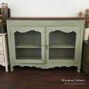 淡いグリーンの色味が目を惹くアンティーク調のキャビネットです。お気に入りの雑貨や本などお好きなものを飾っていただけます。おしゃれ 海外 見せる収納/【訳あり】木製 キャビネット シェルフ (グリーン) W145cm×D35cm×H105cm 鍵付き 両開き アンティーク家具 ショーケース 棚 店舗什器 ディスプレイ クラシック アンティーク レトロ 雑貨 大型家具 受付 ブライダル 結婚式 内装 フォトスタジオ 【展示中古品】