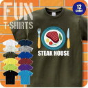 ステーキディナーのおしゃれTシャツです。【Tシャツ 半袖 】 STEAK ステーキ ハウス ディナー ナイフ フォーク ごちそう メンズ レディース [ 5.6オンス 厚手 綿100% 長持ちで肌触りが良い 天然素材 敏感肌] コットン シャツ 白 黒 キャンプ アウトドア 服 服装 おしゃれ トップス