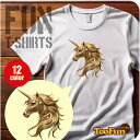 金のユニコーンのおしゃれTシャツです。【Tシャツ 半袖 】かっこいい 金のユニコーン ユニコーン 一角獣 刺繍風 馬 装飾 大きいサイズ リンクコーデ オリジナル デザイン メンズ レディース キッズ [ 5.6オンス 厚手 綿100% 豊富なカラー 長持ち 肌触り良い 天然素材 敏感肌] コットン シャツ 白 黒 アウトドア