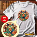 刺繍のようなおおかみのTシャツです。【Tシャツ 半袖 】 狼 おおかみ ウルフ 花札 刺繍模様 オリジナル デザイン メンズ レディース [ 5.6オンス 厚手 綿100% 長持ちで肌触りが良い 天然素材 敏感肌] コットン シャツ 白 黒 キャンプ アウトドア 服 服装 人気 トップス人気 Tシャツ