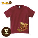 金の鯉のおしゃれTシャツです。【Tシャツ 半袖 】 金の鯉 金魚 錦鯉 刺繍のような風合い 魚 装飾 オリジナル デザイン メンズ レディース [ 5.6オンス 厚手 綿100% 長持ちで肌触りが良い 天然素材 敏感肌] コットン シャツ 白 黒 キャンプ アウトドア 服 服装 人気 夏服 人気 おしゃれ トップス
