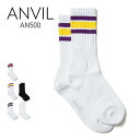 靴下 メンズ ライン ソックス くつした 25-29cm靴下 メンズ ANVIL アンビル USA コットンクルーソックス AN500 パイル 正規 アメカジ スポーツ ストリート ブランド ライン入り 白 黒 スケーターソックス