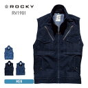 作業ベスト 男女兼用 S-5Lベスト メンズ レディース ROCKY ロッキー フライトベスト v1901 大きいサイズ デニム 作業着 ファスナー付き フラップ付き ストレッチ 秋 冬
