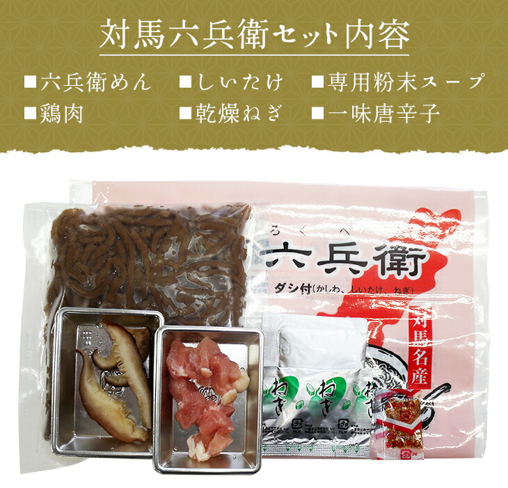 原材料 対馬産さつまいも、対馬産原木しいたけ、 鶏肉、薬味(ねぎ、とうがらし)、六兵衛だしの素