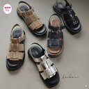 使いやすいブラック、モードなシルバー、こなれ感のあるブラウンの3色展開。かかとをしっかりホールドするストラップ付きで歩きやすさと脱げにくさを両立。秋は薄手ソックスと重ね着で。【Autumn SALE】サンダル レディース 厚底 きれいめ 疲れない Tストラップ 歩きやすい 履きやすい 大人 かわいい ブラック ブラウン シルバー ウェッジソール メタリック アンクルストラップ [7506]