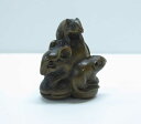 | 【縁起物】 蓮に乗る親子のかえる 根付 木彫り 根付 〜かえるの親子〜一刀彫 / 素材:柘植