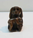| 【縁起物】親子犬 干支 根付 リアルで繊細な彫り木彫り 根付 〜犬〜一刀彫 / 素材:柘植