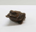 | 【縁起物】銭かえる 根付 リアルで繊細な彫り木彫り 根付 〜かえる〜一刀彫 / 素材:柘植
