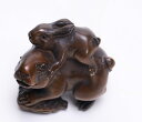 | 【縁起物】 根付 リアルで繊細な彫り木彫り 根付 〜うさぎと亀〜一刀彫 / 素材:柘植